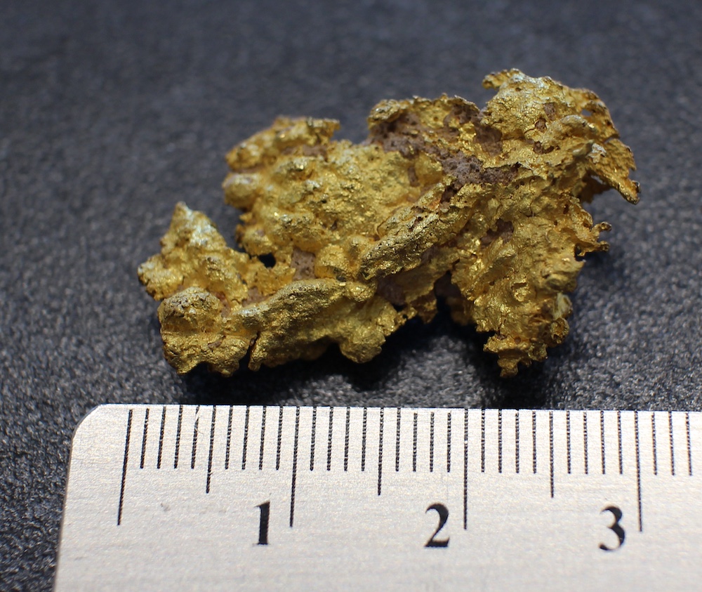 Natural gold nuggets come in various forms. One of the rarest forms is crystalline gold which is gold in it’s most natural form, just as it solidified in the quartz matrix it was brought near the surface of the earth in. As exposed quartz veins are exposed to the elements, acidic rain and oxidation of the stone can release these nuggets from the stone matrix and they can sometime be found by prospectors before they have a chance to be tumbled in streams and rivers to become the more typical flattened and smoother nuggets you more often see.
